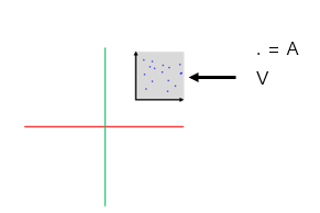 아핀 공간은 A라는 점과 V라는 벡터 공간이 존재하는데, 점은 하나가 아닌 여러 점들이 표시되어 있다.