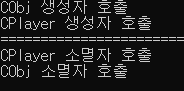 ~CPlayer() { cout << "CPlayer 소멸자 호출" << endl; }