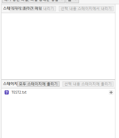 "모두 스테이지에 올리기"를 누르고 커밋 메시지에 아무말(자신이 수정 한 내용)이나 적고 커밋 버튼을 클릭한다.